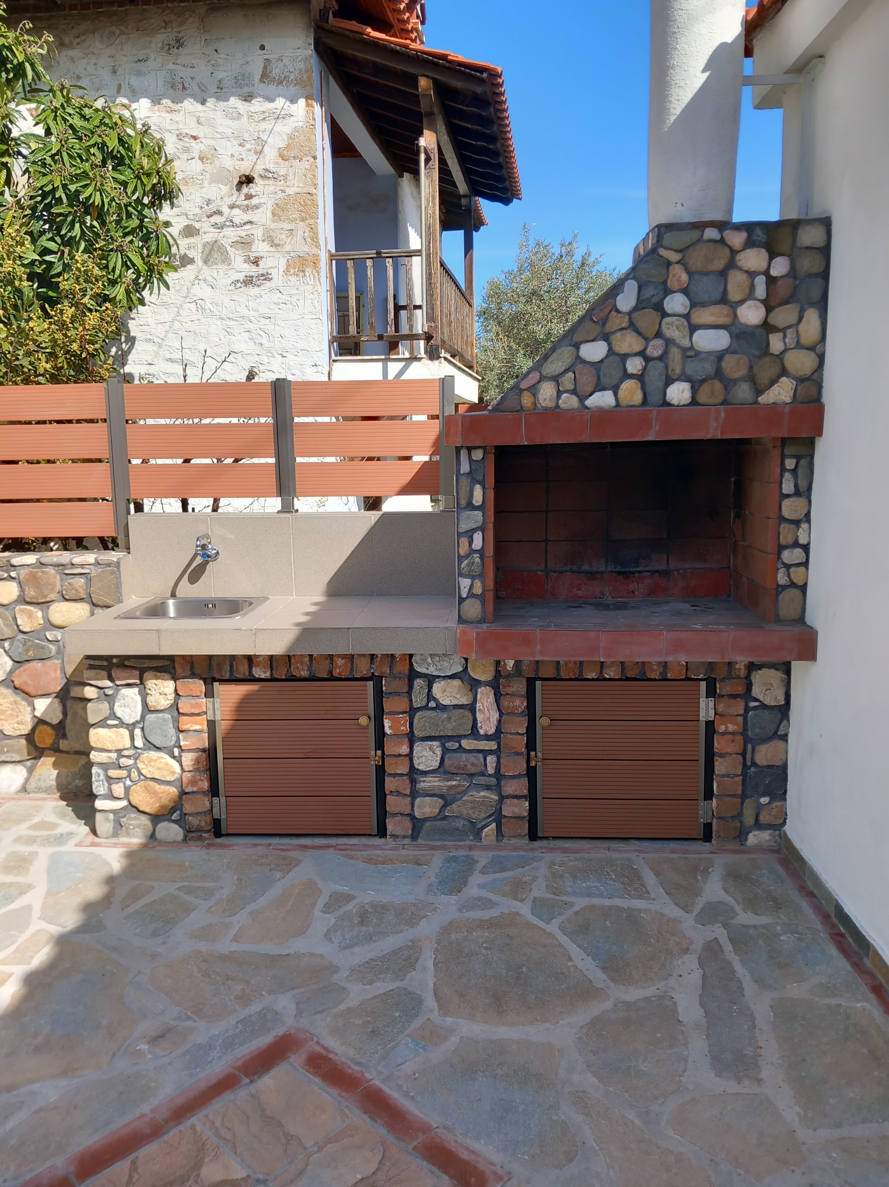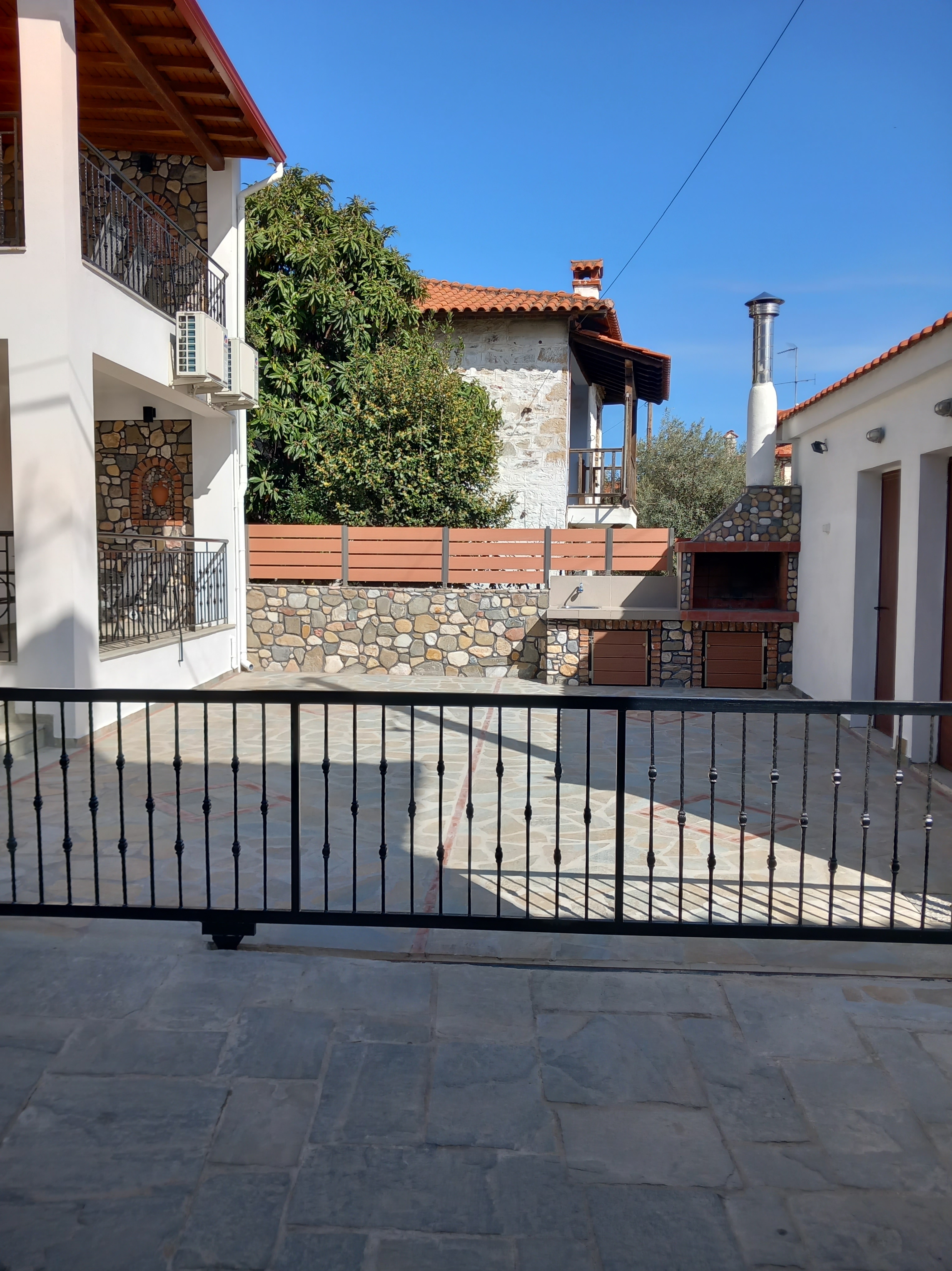 The roomy patio is ideal to enjoy your breakfast in the morning and in the evening to relax with a glass of wine under the lights of the stonewall. You can also enjoy your freshly grilled fish outside on the patio. Our grill is next to the small house in the same yard.
