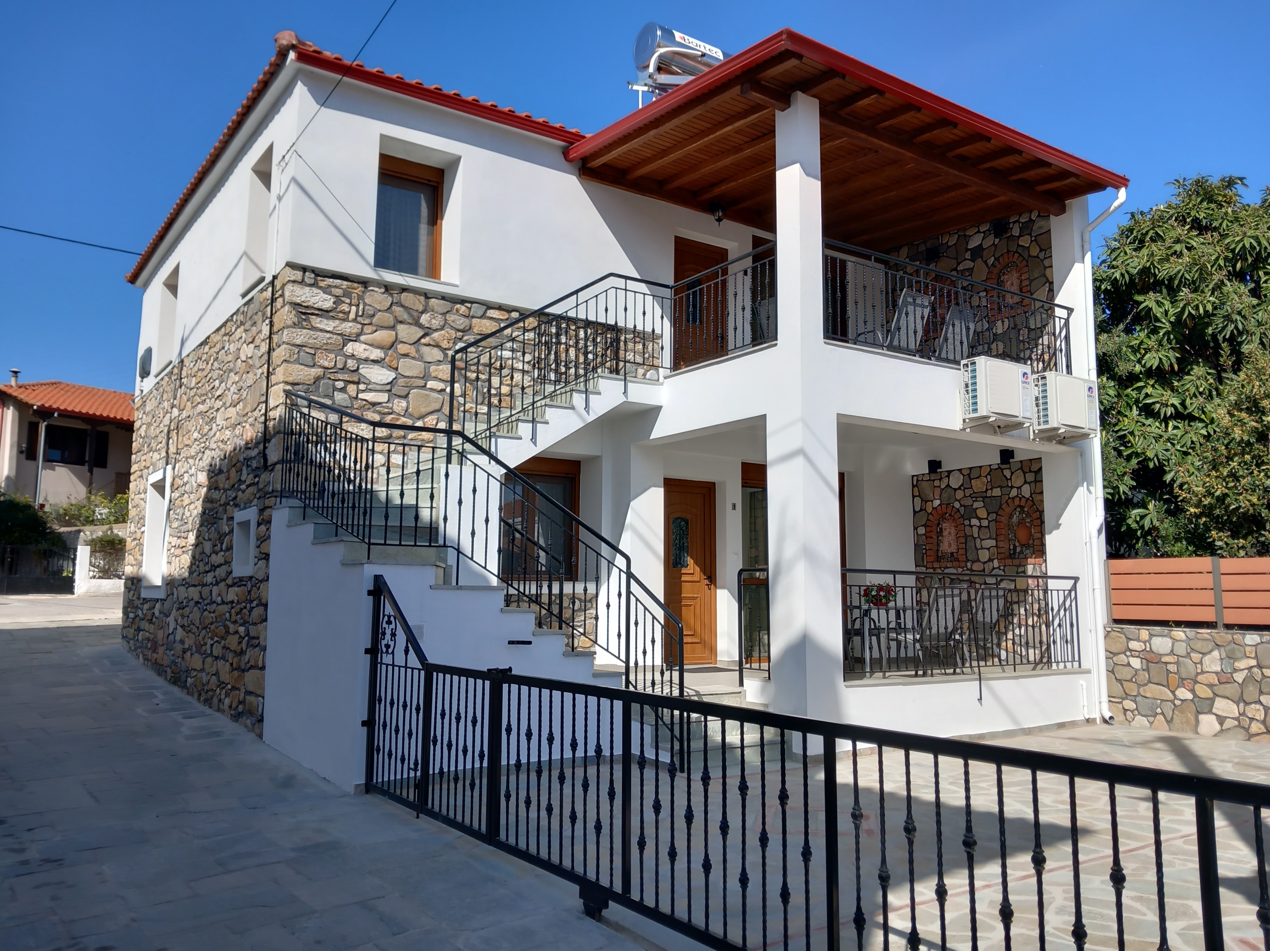 Our stone house “Patriko House”, the interior as well as the exterior, had been in 2018 fully renovated. It has an 8x8m length, a balcony and stairs. 64 sqm is each apartment.